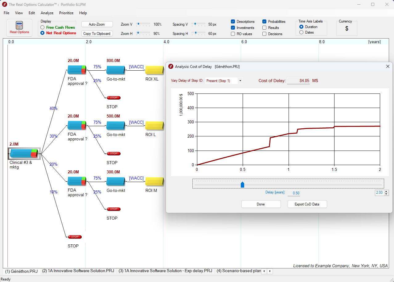 Diese Bewertungsmethode bildet Adaptivität (Agilität) wirklichkeitstreu ab – bei Investitionen, Zeitplänen und Ergebnissen. Sie modelliert dynamische Investitionen und befreit Sie von den hohen und oft groben Sicherheitsaufschlägen traditioneller NPV-Berechnungen.